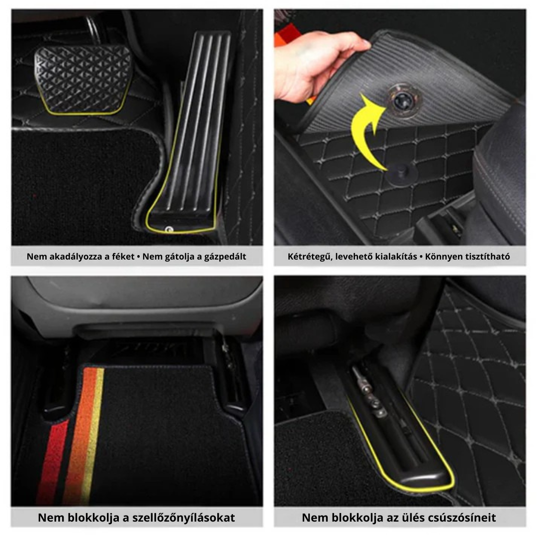 Kiválóan illeszkedik a legtöbb autómodellhez, nem blokkolja a pedálokat, az üléssíneket vagy a szellőzőnyílásokat.