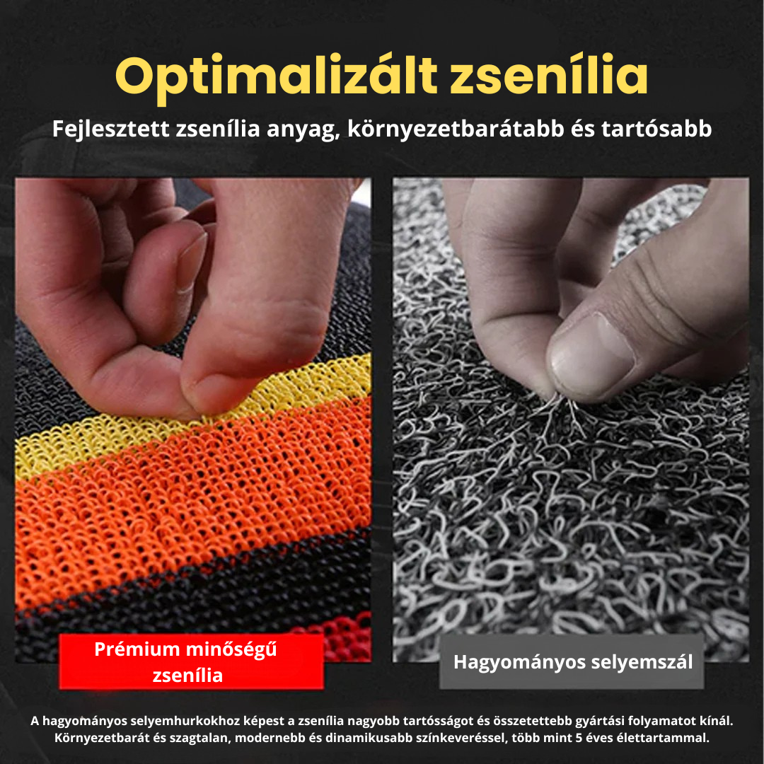 Minőségi PVC-ből és hernyóból készült, kopás-, karc- és igénybevételálló.